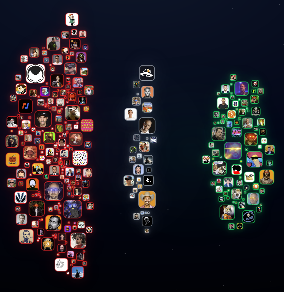 - Pirmas kasėjas palaikė kontroversišką Bitkoino siūlymą. Kasimo pulas "Ocean" parėmė mano minėtą siūlymą (BIP-110) laikinai apriboti galimybes į Bitkoino blokčeiną įkelti ne finansines operacijas, pvz., paveiksliukus. Tiesa, už šio pulo stovi kontroversiškasis Bitkoino vystytojas Luke Dashjr, kuris ir remia minėtą siūlymą. Nors kol kas ir nesitikima, kad BIP-110 sulauks reikiamos paramos tai vis dar išlaiko papildomą ir vargu ar reikalingą įtampą Bitkoino bendruomenėje, įskaitant ir investuotojus. Tuo pačiu, naujas projektas pabandė apibendrinti diskusijas X plaformoje ir įvertinti, kaip pasidalina BIP-110 priešininakai (raudona grupė), neutralūs dalyviai (balta) ir cenzūros šalininkai (žalia):